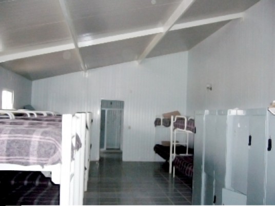 Constructions intended for food preparation and consumption for communities affected by natural disasters. Easy wall cleaning, low maintenance, highly resistant and fast construction.